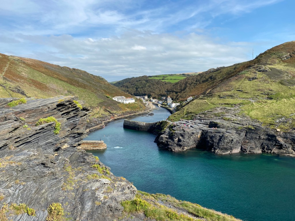 Gleich mein erster Ausflug nach Emmas Werkstattbesuchen hatte mich ja nach Somerset geführt mit einem kleinen Abstecher auf diesen Küstenwanderweg. Eine Woche später dann war ich nochmal ein bisschen in der Nähe und habe einen dieser malerischen Küstenorte Cornwalls an der Nordküste besucht – zugegebenermaßen, weil ich ein Foto von einem „Museum of Witchcraft and Magic“ entdeckt habe 🙂 Und da musste ich dann natürlich hin 😉 Der kleine Ort Boscastle ist aber auch ein wirklich traumhafter Ort mit süßen Lädchen und Cafés und, da an der Küste, kann man auch dort wieder herrlich ein paar Kilometer wandern gehen und die wunderbaren Ausblicke genießen.