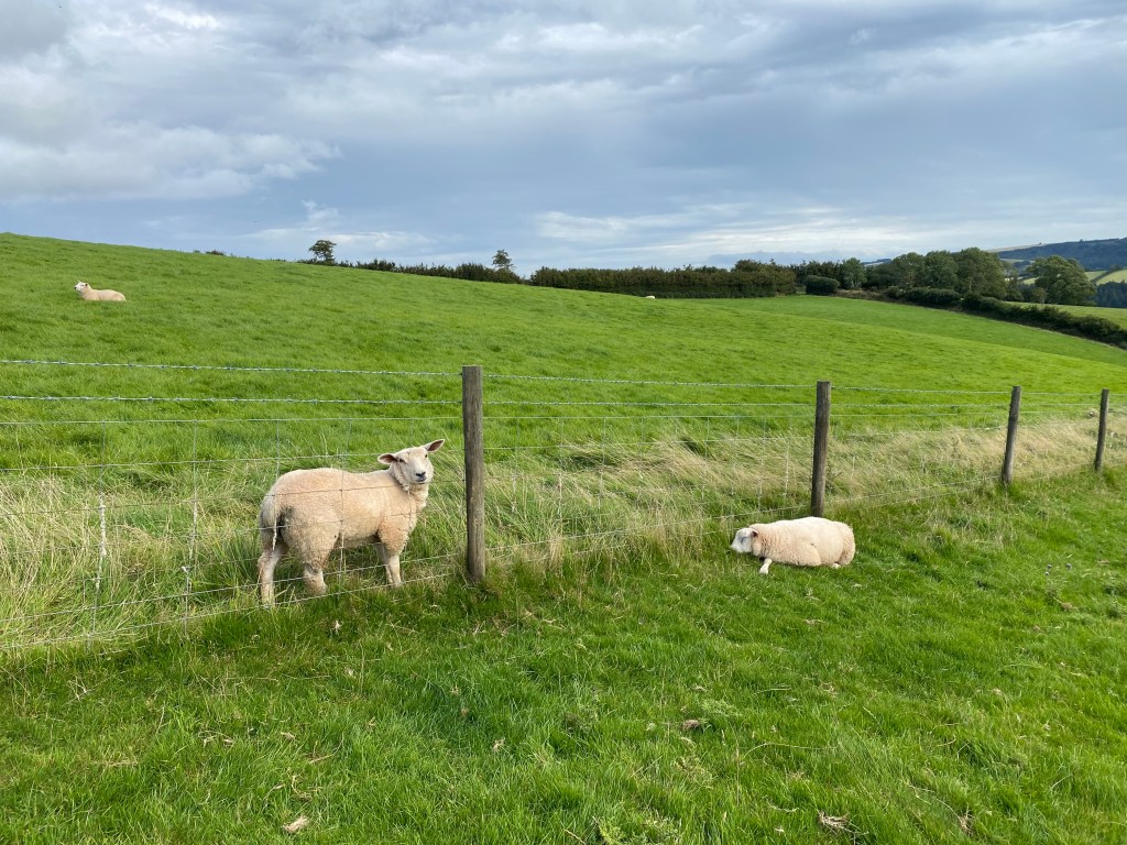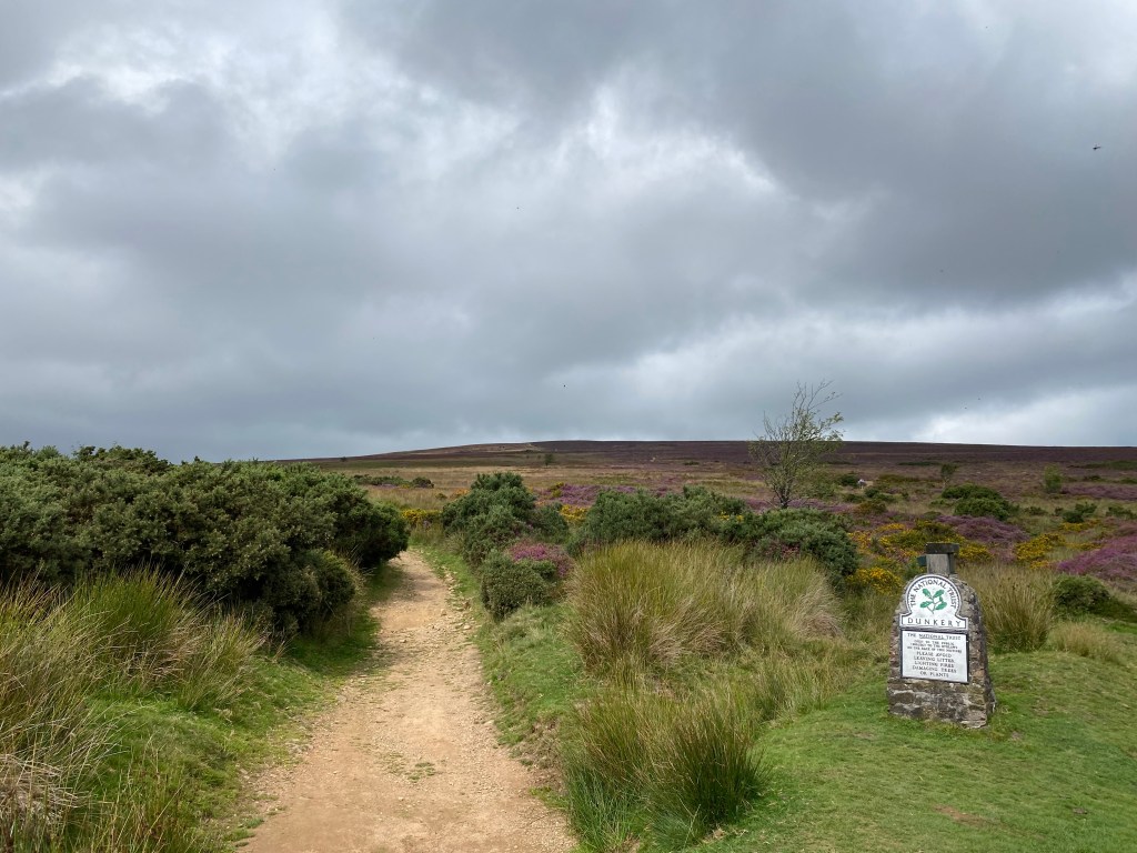 Eine deutlich entspanntere Wanderung mache ich an meinem letzten freien Tag auf der Farm (ja, die Zeit ist bald rum, yippieh 🙂 ) – ich wandere auf den höchsten Punkt von Somerset. Was sich irgendwie erstmal anstrengender anhört als ein Küstenwanderweg ist total erholsam – zwei Stunden auf einen kleinen Hügel, zwei Stunden wieder zurück, anfangs durch diese wunderschöne Landschaft, für die England so bekannt ist: kleine grüne Hügel, Weideflächen und Wiesen, meist von Hecken oder kleinen Mauern eingegrenzt, später dann durch eine grandios blühende Heidelandschaft. Und dieser Blick: besagte englische Landschaft plus Küste und Meer … dazu zwar weniger Sonne, aber es regnet nicht, was will ich mehr?