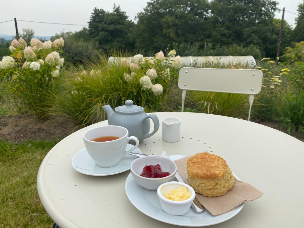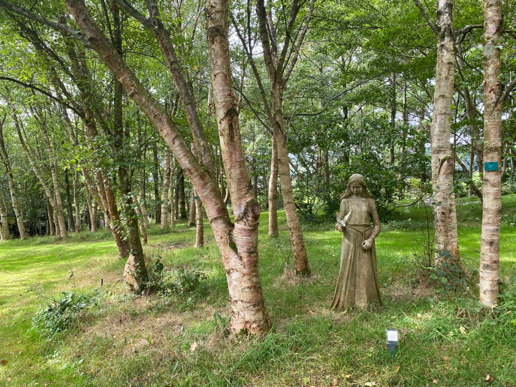 Weil ich am nächsten Tag die verbleibenden drei Stunden nicht so durchfahren will, gucke ich nochmal schnell auf der Karte, ob vielleicht noch irgendetwas Schönes auf dem Weg liegt und stolpere so doch am allerletzten Tag tatsächlich noch über ein idyllisches Kleinod, einen sehr wilden, aber auch unglaublich schönen Garten. Seit meinem letzten Gartenerlebnis, als es hauptsächlich von Touristen und Familien nur so wimmelte (nicht schlimm, aber ein bisschen laut 😉 ) bin ich da etwas zurückhaltend, aber die Google-Bewertungen schwanken zwischen „friedlich“ und „langweilig“ 🙂 und da bin anscheinend richtig 😉 Ein winziges Sträßchen führt zu einem kleinen versteckten Parkplatz unter Bäumen – hier passen wohl weniger als 20 Autos hin und aktuell sind es nur sieben oder so. Es gibt ein zuckersüßes kleines Cafe, das von zwei älteren Damen betrieben wird und quasi leer ist (ein gutes Vorzeichen) und im Park selbst läuft man dann nur sehr vereinzelt einer kleinen Gruppe Menschen über den Weg, ansonsten herrliche Stille 🙂 Die „Stone Lane Gardens“ am Rande des Dartmoor Nationalparks wurden von einem Birken-Liebhaber angelegt, es gibt unzählige versteckte Teiche, Bänke und ein bisschen Kunst … mal so naja, mal richtig träumerisch schön. Und unzählige Birken… Es ist herrlich entspannend und wirklich sehr, sehr friedlich und der „Gardeners Tea“ im kleinen Café mit Scones, Marmelade und schwarzem starken Tee ist sehr, sehr lecker. Ein perfekter Abschluss.