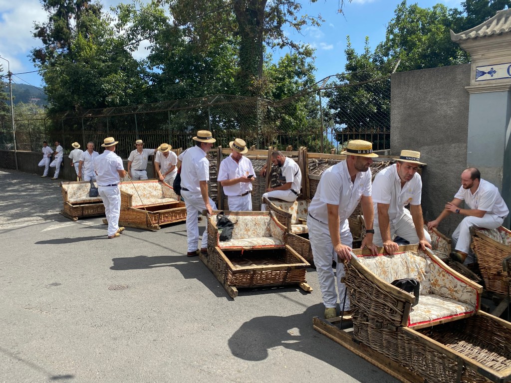 In Funchal gibt’s eine tolle Seilbahn, die einen quasi auf den Hausberg bringt (wenn man das bei einer Stadt, die praktisch nur aus Bergen besteht, überhaupt sagen kann). Auf dem Hausberg liegt Monte, bekannt für eine schöne Kirche und für die Korbschlittenfahrten, die wir uns zwar ansehen, aber nicht ausprobieren, die unendliche Warteschlange hält uns da ganz gut von ab 😉 Aber der Ausblick von hier ist einfach traumhaft!