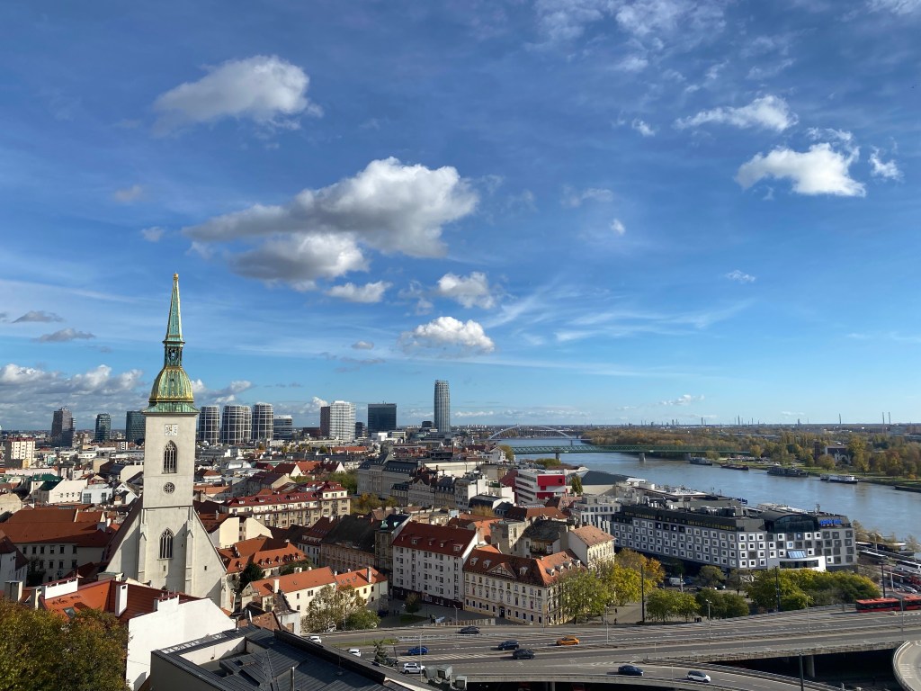 Auch sehr schön: die Altstadt von Bratislava. Klar ist es schwierig gegen Wien zu bestehen, aber auch hier gibt es so viele wunderschön renovierte oder restaurierte Gebäude, eine große Anzahl an tollen Cafés und die Donau, die – anders als in Wien – mitten durch die Stadt fließt, herrlich! In Bratislava gibt es auch eine schön renovierte Burganlage, von der man aus einem herrlichen Blick über die Stadt hat – und dazu, was soll ich sagen, wieder richtig schönes Wetter! (Wenn Engel reisen 😃😉)