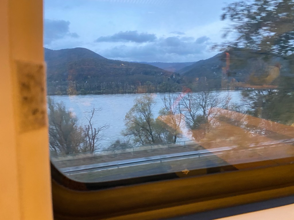 Das hab ich bisher bei all den Zugfahrten schon gedacht. Herbstliches und meist schon eher trübes Wetter, buntes Herbstlaub, sehr flaches Land. Irgendwie hab ich mir das ein bisschen spektakulärer vorgestellt 😃 aber wohl einfach die Geografie der bisher bereisten Länder hier ein wenig außer Acht gelassen 😃 Vom Bodensee nach Innsbruck und dann nach Wien sah es schon häufig richtig toll aus, wobei wir grade aus Innsbruck heraus erstmal viel in Tunneln unterwegs waren und da ist die Aussicht ja bekanntermaßen recht eintönig 😉 aber die letzten Fahrten gingen eher durch flaches und recht unbewohntes Land … ich denke aber, das wird sich im Verlauf der Reise noch ein bisschen ändern 😃