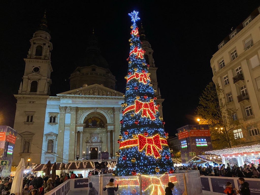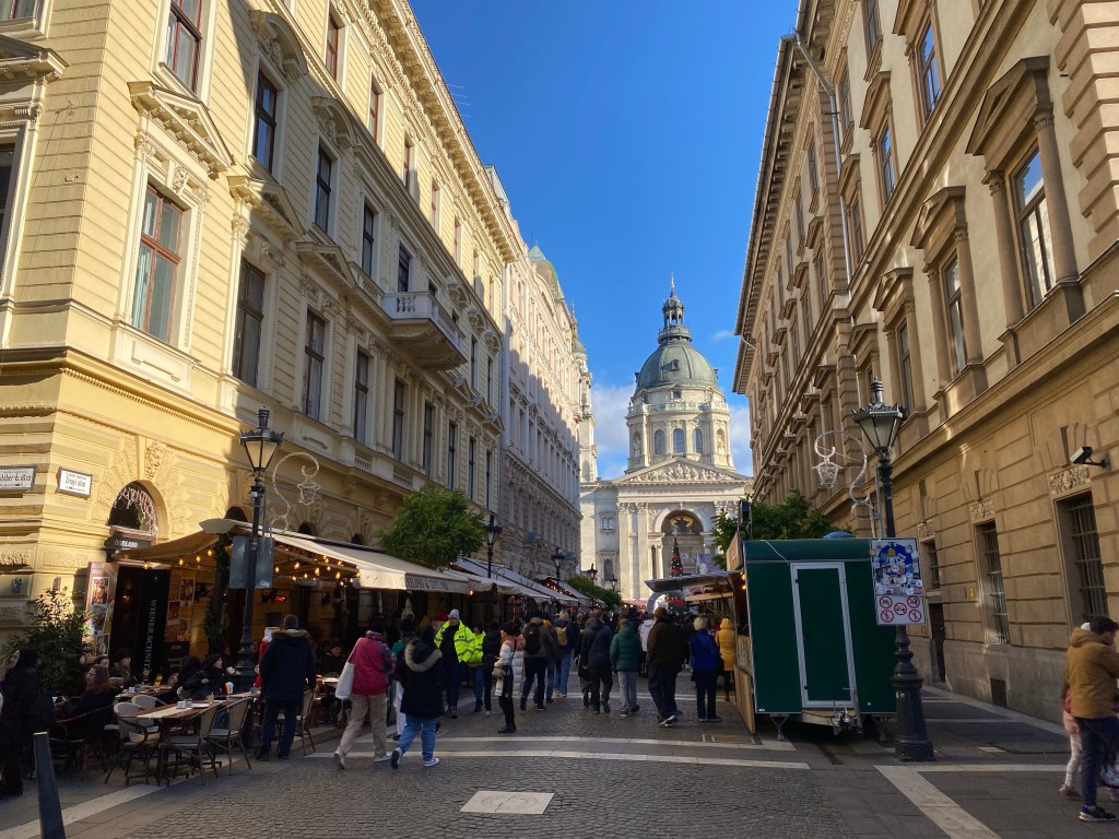Nach der Stadtführung bummeln wir gemütlich durch den Pester Stadtteil, erst zur Markthalle – die so voll ist, das man sich wirklich nur so durchschiebt – und später dann wieder zur Kathedrale. Hier ist sogar schon der Weihnachtsmarkt aufgebaut und geöffnet!! 😃 was für ein Timing 😉