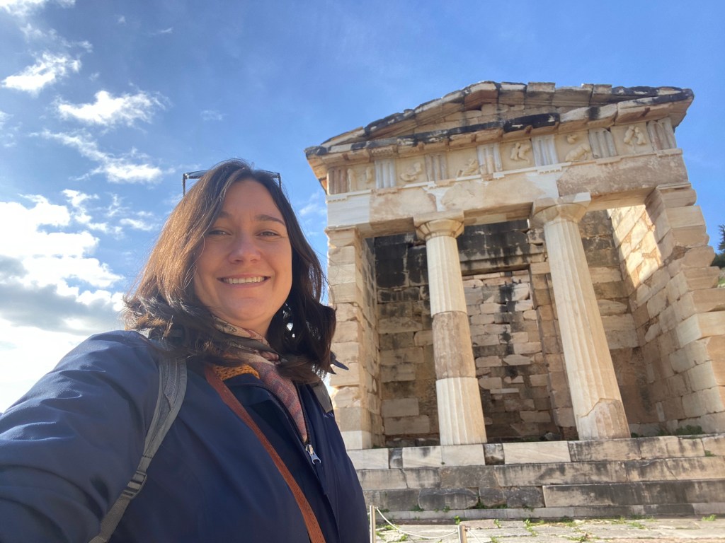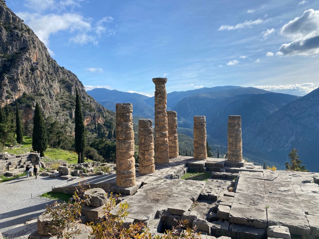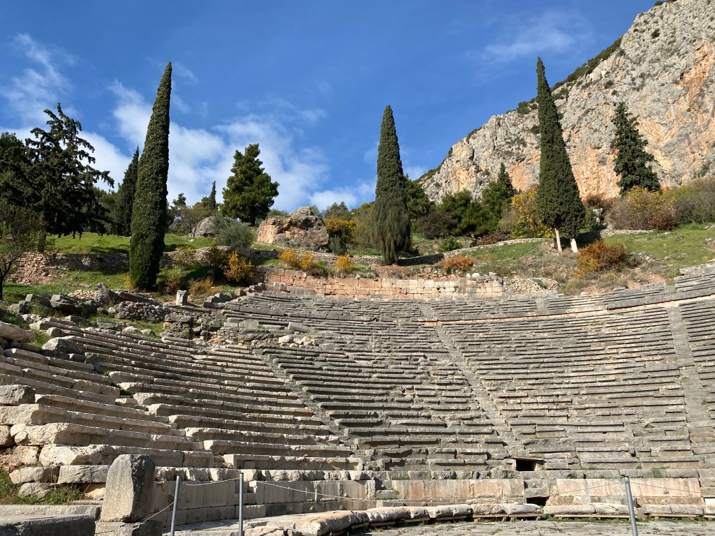 Delphi liegt so zwei bis zweieinhalb Stunden Fahrt von Athen entfernt, wir starten super pünktlich und die Reiseleiterin ist total nett und Archäologin, weiß also wovon sie spricht. In Delphi angekommen, haben wir zwei Stunden für die Ruinen, werden also nicht als Gruppe da durch geschleift 😉 sehr schön finde ich das!