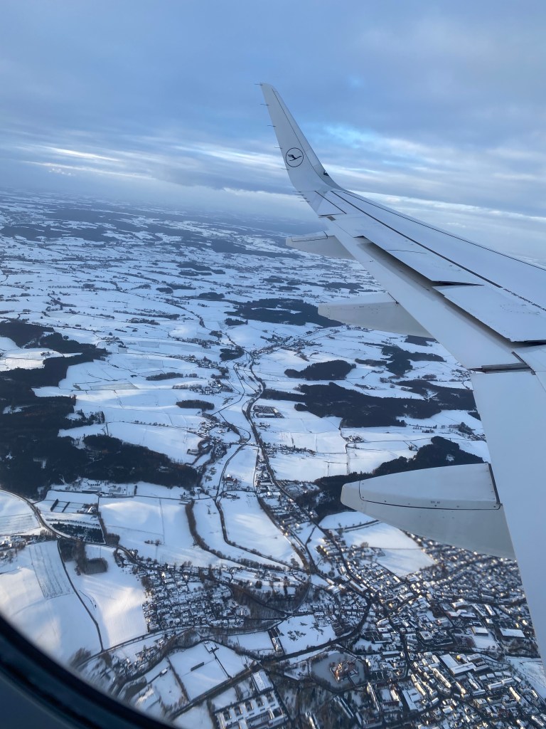 Fünf Minuten, nachdem ich am Flughafen angekommen bin, bin ich auch schon durch die Security durch – ohne jede Beanstandung… – und bin zwanzig Minuten vor dem Boarding am Gate. Das ging fix. Auf die Minute pünktlich startet das Boarding und ebenfalls, auf die Minute pünktlich, hebt das Flugzeug um genau 7.15 Uhr vom Rollfeld ab… ich glaube, sowas ist mir noch nie passiert … Ein Hoch auf die Lufthansa 😉