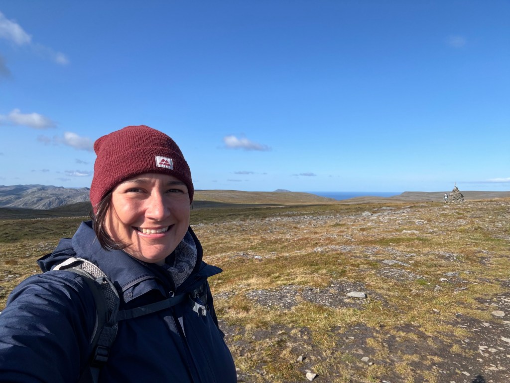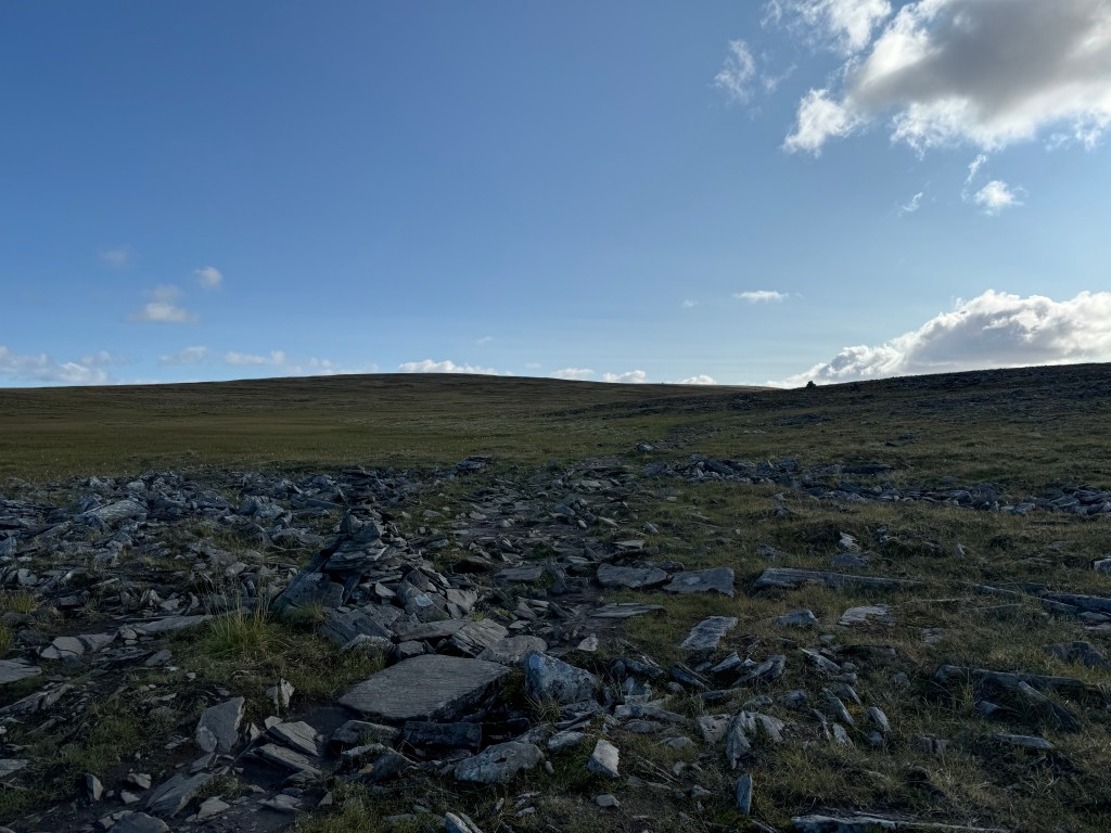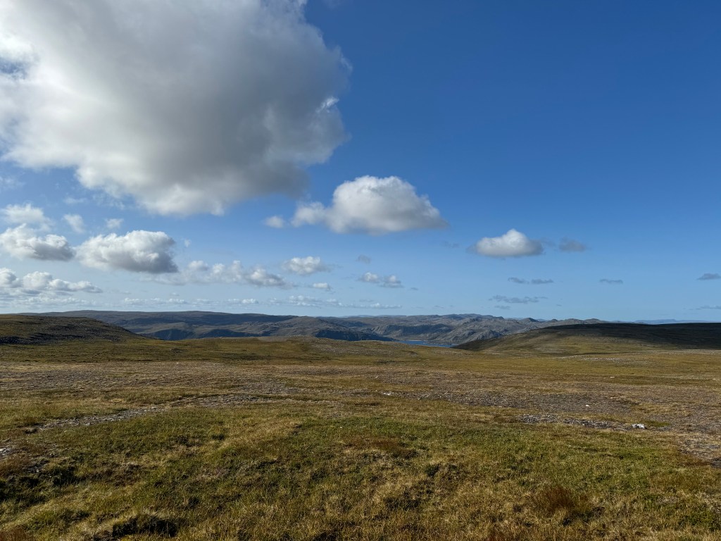 Der Weg führt gut markiert über diese karge arktische Tundralandschaft, hier sind keine Bäume weit und breit mehr zu sehen, nur direkt am Boden können winzige Blaubeerpflänzchen und ein paar Gräser und Flechten überleben. Selbst wenn man kurz keinen weiteren Steinturm als Markierung entdeckt, die bunten Outdoorjacken, die irgendwo vor einem über das Plateau wuseln, sind Wegweiser genug.