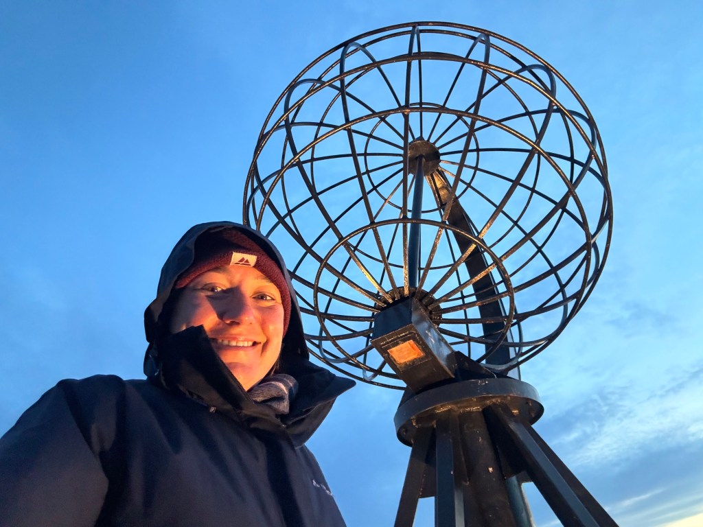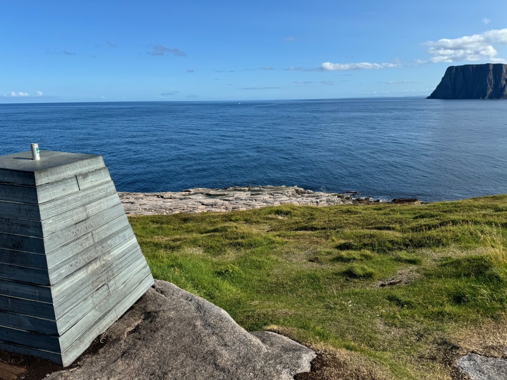 Und dann bin ich endlich da, es gibt keinen Trommelwirbel, keine dramatische letzte Biegung, irgendwann steht man einfach an einem (wirklich nicht besonders schönen) Betonklotz, auf den in vielen Sprachen eingraviert ist, das hier der nördlichste Punkt von Europas Festland ist. Es fühlt sich aber trotzdem ziemlich toll an!! Ich stehe nun bei 71° 11′ 08″ nördlicher Breite, 1.400 Meter weiter nördlich als der Metallglobus.