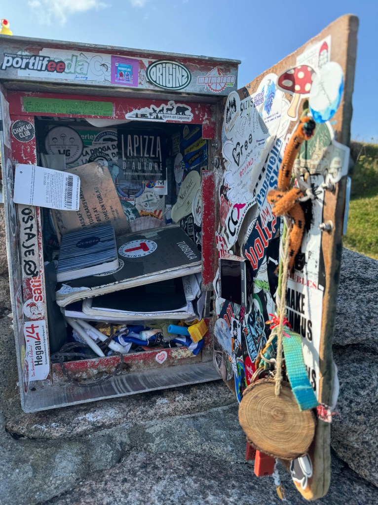 Und hier noch ein buntes Schränkchen mit wirklich allerei Krimskrams von Wanderen aus aller Welt …