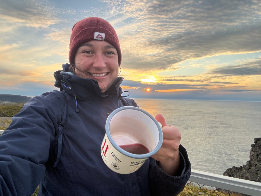 Später schnappe ich mir meinen Campingstuhl, meinen Sturmkocher (neue Errungenschaft und genial), eine Fünf-Minuten-Terrine und mein Buch und setze mich ganz nah ans Geländer. Jetzt hab ich mehr Meerblick als alle großen Camper in erster Reihe zusammen 😉 Klar sind Spaghetti Bolognese im Instant Tomatensaucenpulver jetzt nicht die Krönung, aber es ist recht windig hier, zum Kochen am Auto zu voll und ich hab auch einfach gar keine Lust mehr nach der ganzen Wanderei. Nach 18 Kilometer wandern und am nördlichsten Punkt Europas schmeckt auch eine Fünf-Minuten-Terrine ganz wunderbar 🙂