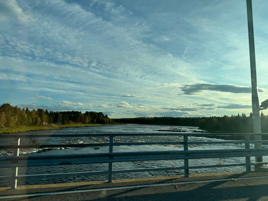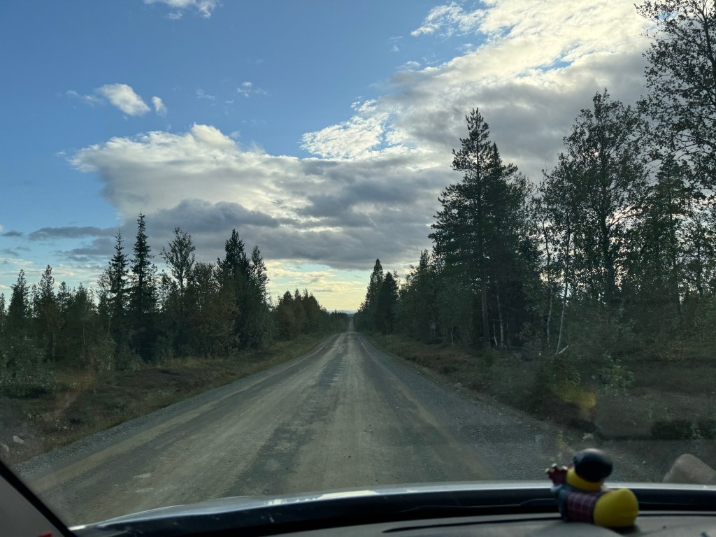 Kiruna ist „nur“ 450 Kilometer entfernt und in Schweden stehen die Chancen auf Ganzjahresreifen besser, hoffe ich. Also den Tank nochmal gut gefüllt, die Daumen gedrückt, das so ein Ersatzreifen locker noch weitere 450 Kilometer schafft und los geht’s!