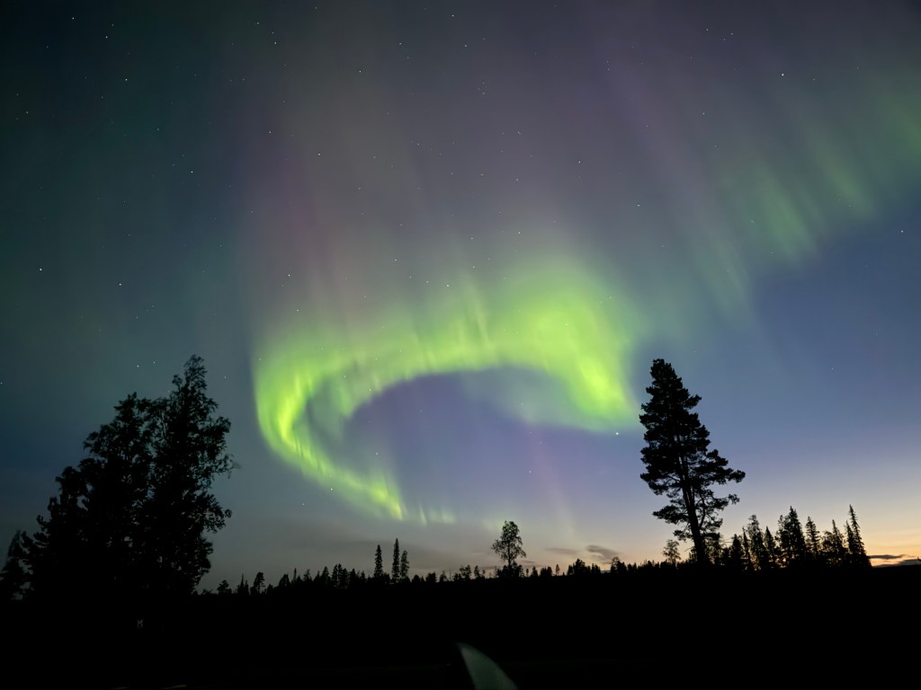 Auch wenn mir die vorher noch hastig gegoogelte Frage: „Polarlichter mit dem Handy fotografieren“ keinen Mut gemacht hat (viele Suchergebnisse, die alle beschreiben, wie man Polarlichter mit der Spiegelreflexkamera macht und ganz zum Schluss mehr oder weniger schreiben, das Handyfotos grauenhaft werden – ja genau dieses Wort wurde genutzt – ), ich versuche es trotzdem und „grauenhaft“ finde ich es jetzt nicht 😉
