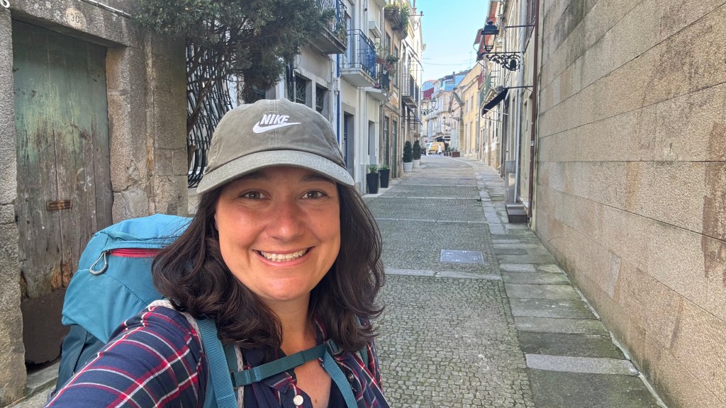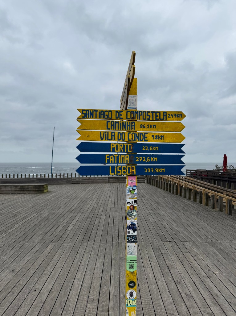 Und da habe ich mal wieder eine leicht verrückte Idee: sie heißt „Jakobsweg“ 😊 Weil davon bisher auch wirklich jede und jeder geschwärmt hat, denke ich mir, das kann ich auch 😊 und entscheide mich für den kürzesten und (angeblich) schönsten davon, den portugiesischen Weg von Porto nach Santiago de Compostela. Zwei Wochen und etwas über 240 km führt der Weg immer recht nah (manchmal in Sichtweite, manchmal auch 30 km entfernt) an der Atlantikküste entlang durch kleine Dörfchen und über Felder und Wiesen. Das schaff‘ ich auch, denke ich mir und los geht’s 😊